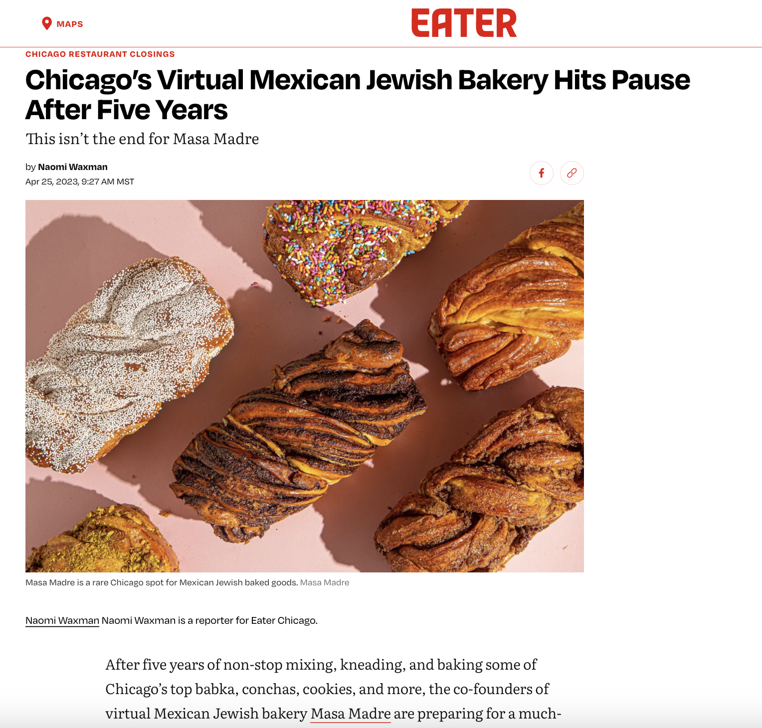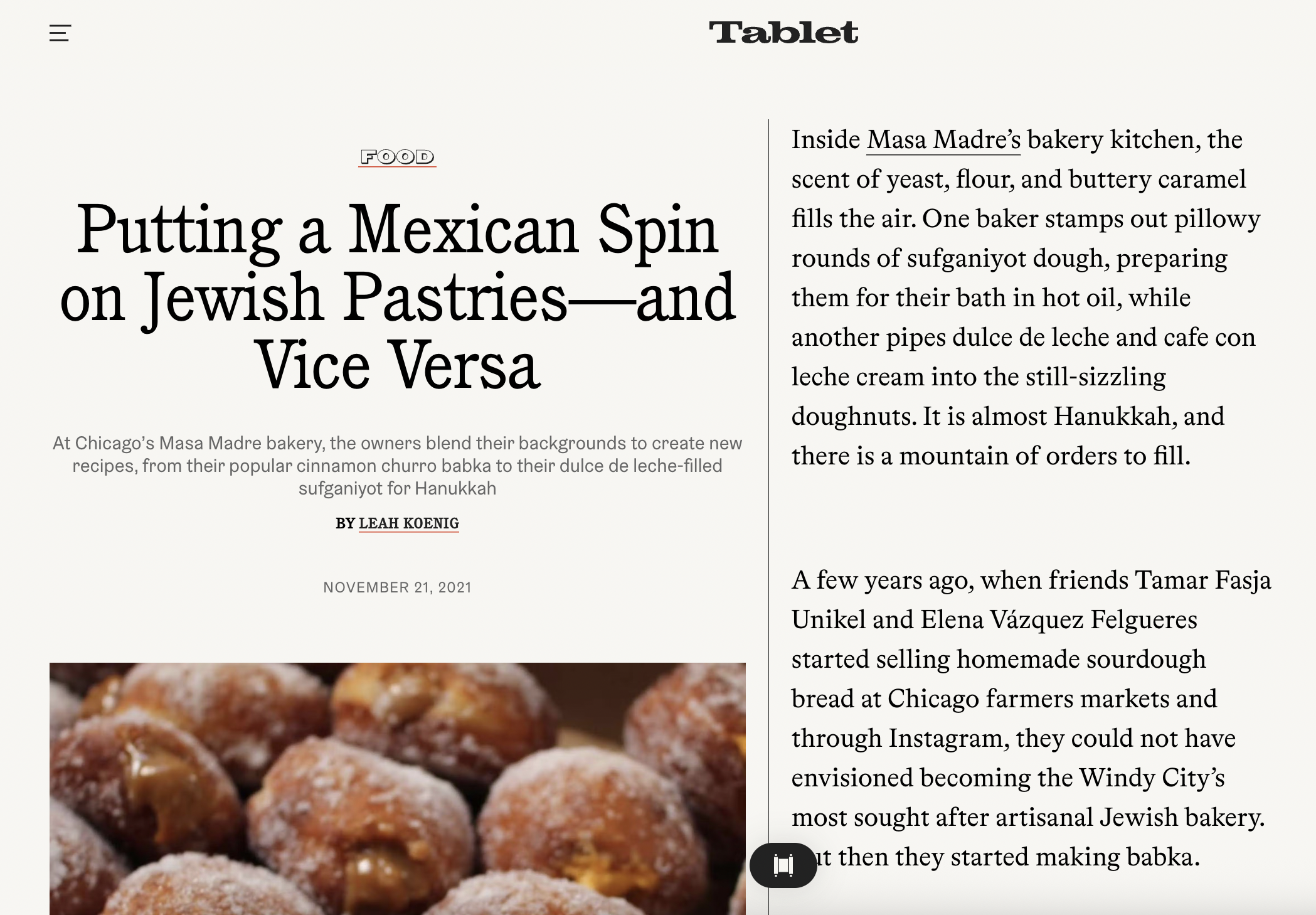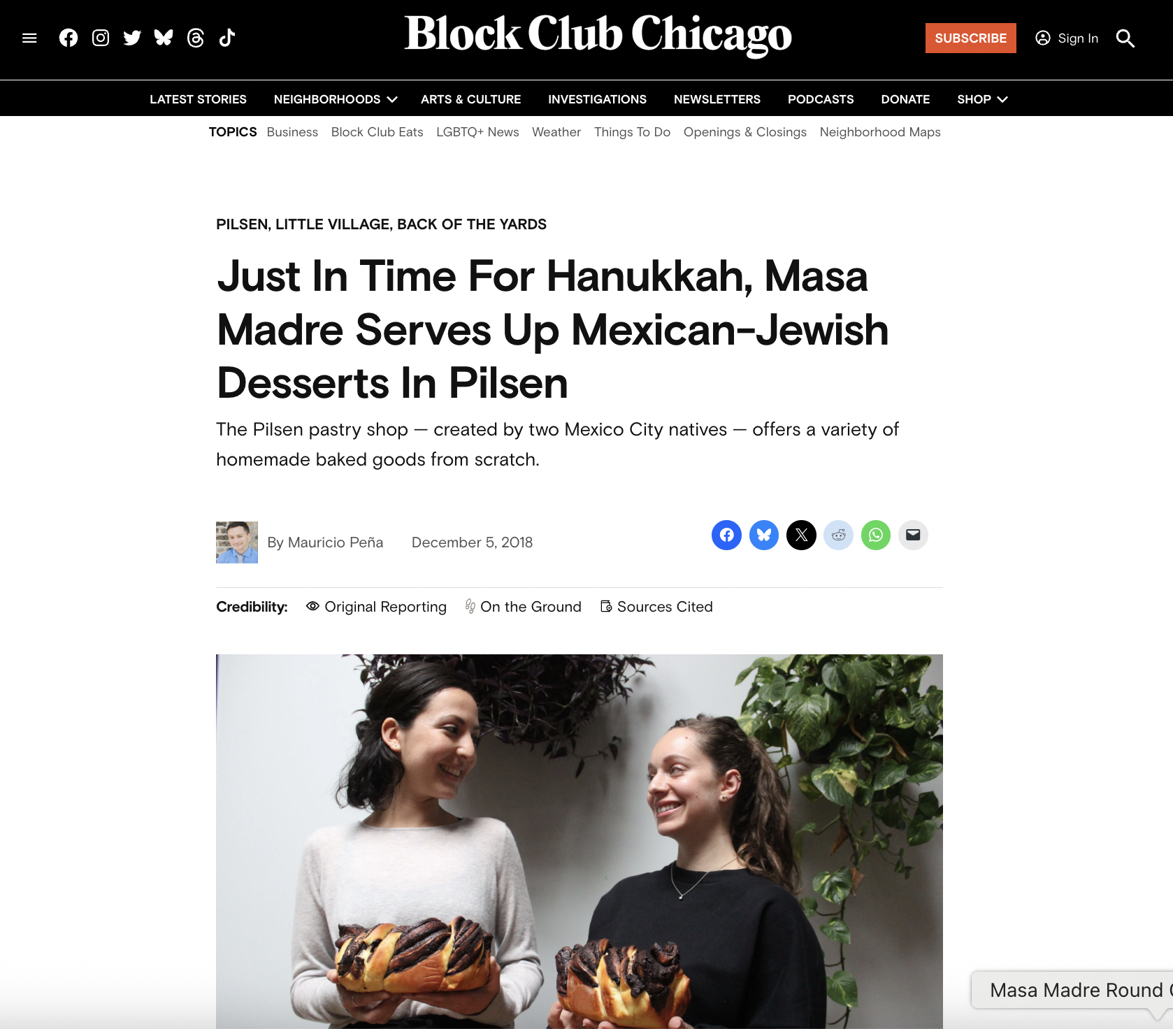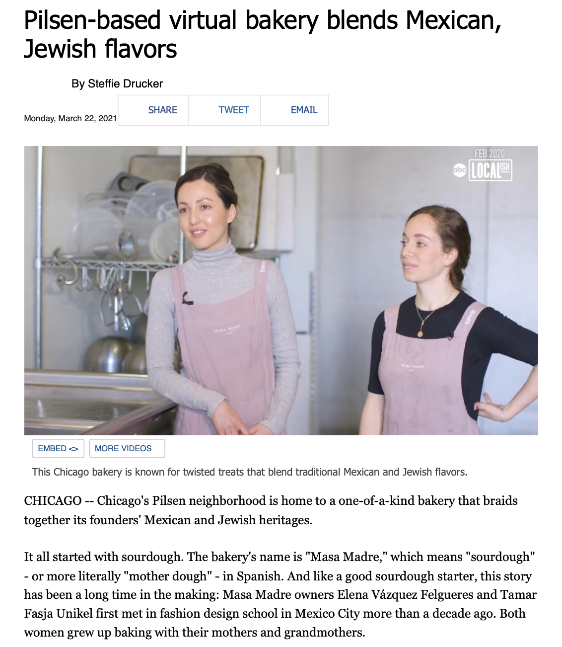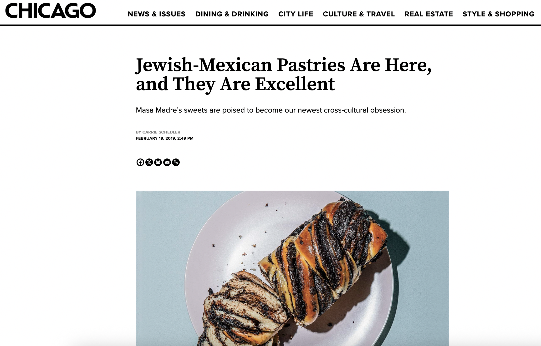 Featured on ABC Localish Block Club Chicago The Nosher Chicago Magazine Chicago Reader ABC7 News bon appetit Forbes Soho House Tablet Magazine WBEZ Chicago WTTW News Chicago Sun Times Nespresso USA Eater